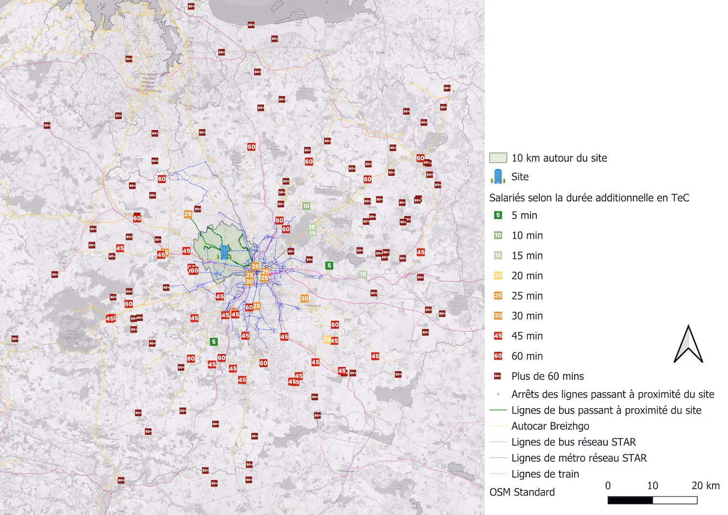 Nous calculons les trajets en transports en commun et à vélo de tous les automobilistes actuels pour :